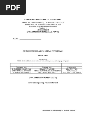 Contoh Muka Depan Kertas Peperiksaan Pdf